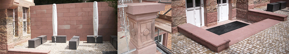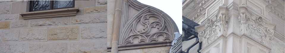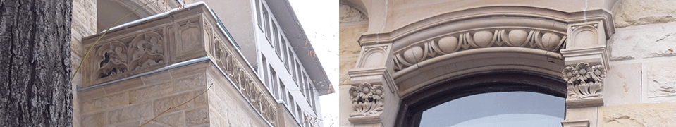Ein aufmerksamer Gang durch die historische Stadt hilft die Leistungen der Baumeister und Steinmetze - meist um die vorletzte Jahrhundertwende - schätzen zu lernen. Diese einmalige Exponate zu erhalten, zu pflegen und zu rekonstruieren ist unsere Aufgabe. In der denkmal-pflegerischen Erhaltung der Bauwerke haben wir seit jahrzehnten Erfahrungen und stellen uns gerne immer wieder neuen Herausforderungen. Durch die zunehmenden Umwelteinflüsse wird der Naturstein immer mehr in Mitleidenschaft gezogen und dadurch die Pflege der Fassaden unabdingbar. Die Erhaltung der Originalsubstanz hat oberste Priorität. Wo dieses nicht mehr möglich ist, bleiben nur die Alternativen: Austausch des Steines oder Ergänzung durch Steinersatzmaterial. Wir bieten nicht nur die Restaurierung von bereits vorhandenen Steinen an, sondern fertigen auch neue Bauteile. Zum Beispiel ergänzen wir Fenstergewände oder Hausgesimse bei einer Hausaufstockung oder anderen Veränderungen. Bei der Gestaltung eines Neubaus stehen wir Ihnen selbstverständlich ebenfalls zur Seite. Sei es bei der Umsetzung einer Fassade mit vorgehängten Natursteinplatten, bei dem Einbau von Fensterbänken oder von Natursteingewänden.